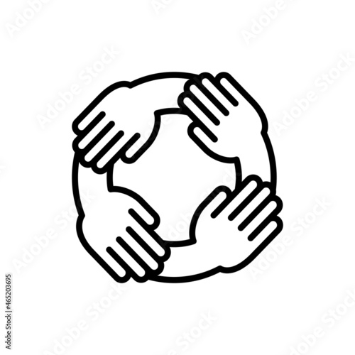 Teamwork, hands holding each other by wrist. Thin line icon. Collaboration, support, solidarity, effective work in group. Vector illustration.