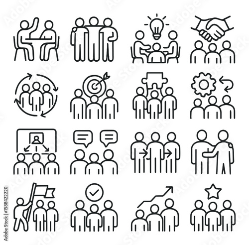 Teamwork icon collection. simple compose linear team, collaboration, meeting, leadership vector icons