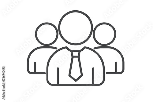 Teamwork icon with leader. Vector illustration of business group, personnel, and crowd. Concept for community, social network, followers, management, and leadership. Thin line art.