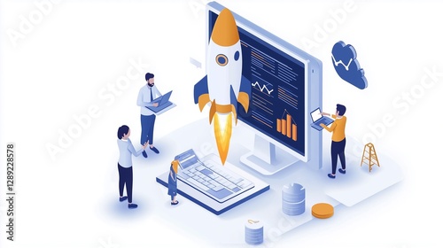 Teamwork Launch Startup Business Success Rocket Data Analytics Cloud Computing
