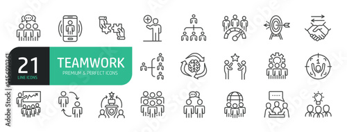 Teamwork Line Icon Set. Collection of Seminar, Meeting, Presentation, Work Group, Human Resources, and more.