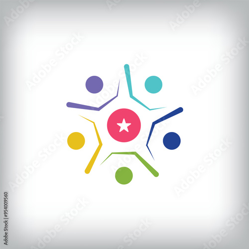Teamwork modern logo set with stars. Goal, company, meeting and growth icon. vector