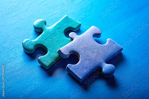 Teamwork Puzzle Pieces: Close-up of Two Interlocking Jigsaw Puzzle Pieces on Blue Background