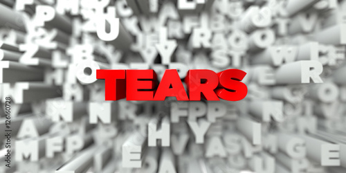TEARS - Red text on typography background - 3D rendered royalty free stock image. This image can be used for an online website banner ad or a print postcard.