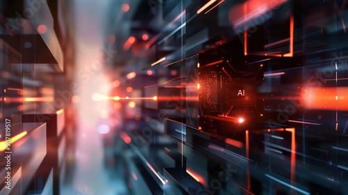 Tech design banner in black and orange colors with AI Artificial Intelligence letters