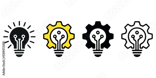 Tech Gear Bulb Logo Design – Circuit Light Innovation Symbol Vector