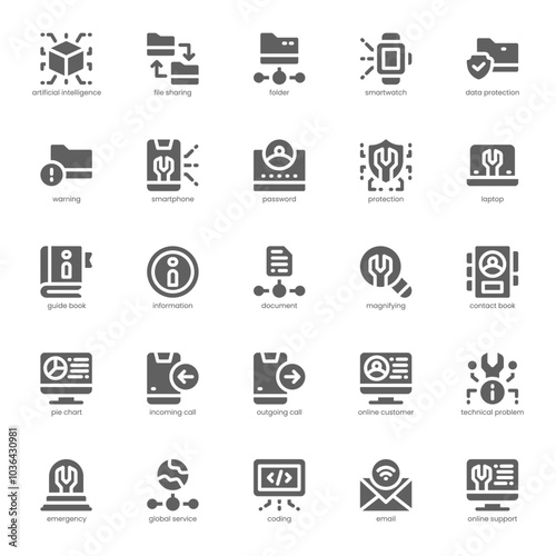 Tech Service icon pack for your website, mobile, presentation, and logo design. Tech Service icon glyph design. Vector graphics illustration and editable stroke.