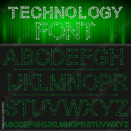 Tech vector font typeface unique design. For technology, circuits, engineering, digital , gaming, sci-fi and science subjects.