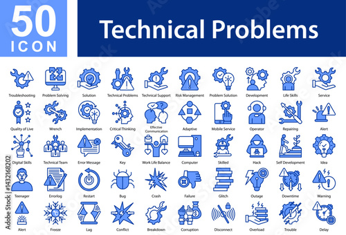 Technical Problems Icon Collection and Symple Concept mixed blue color