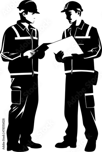 Technical Twosome Engineers Holding Plan Symbol Design Duo Duo with Blueprint Logo