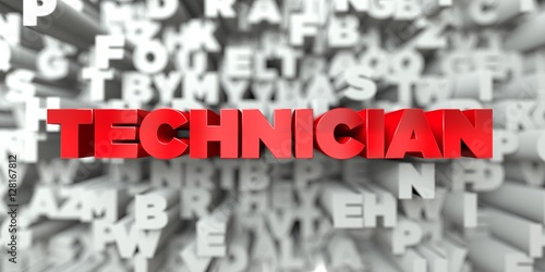 TECHNICIAN - Red text on typography background - 3D rendered royalty free stock image. This image can be used for an online website banner ad or a print postcard.