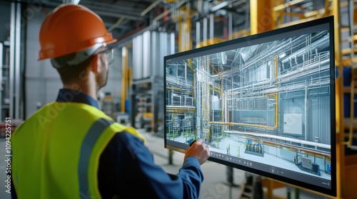 Technician demonstrating smart and sustainable HVAC solutions during a client consultation, using dynamic 3D visualizations