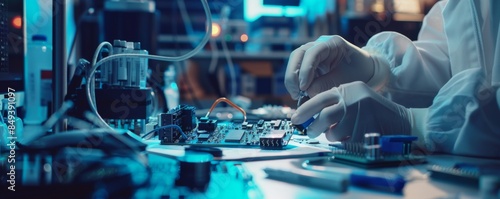 Technician hands are repairing the smartphone in the lab, technology concept banner, generative AI.