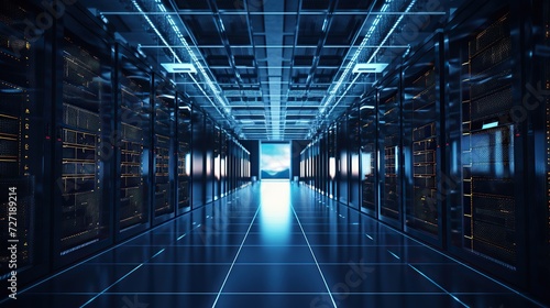 Technician in server room with data connection visual effect.Backup cloud data service center.