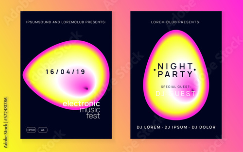 Techno Fest. Modern Effect For Presentation. Elegant Background For Invitation Vector. Wave Neon Flyer. Disco And Show Concept. Pink And Yellow Techno Fest