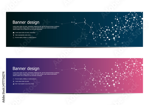 Technological and scientific banners with structure of molecular particles and atom. Polygonal abstract background. Vector illustration