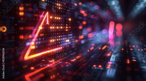 Technological arrows in a dark backdrop a glowing arrow indicating a side