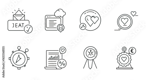 Technology and online activities line art icons
