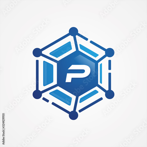Technology design vector orbit shape hexagon with letter P symbol design minimalist