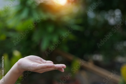 Technology, hand holding with environment Icons over the Network connection on green background.