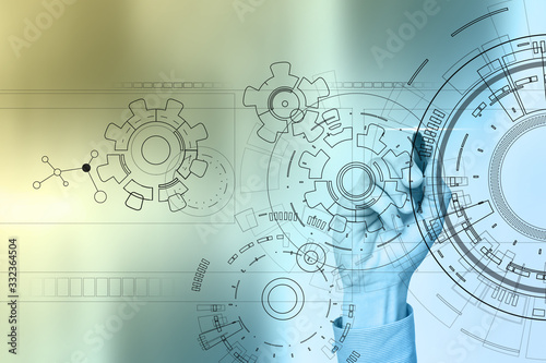 Technology interface background with gears draft. Engineering, Business, Development and communication concept.