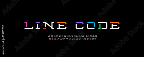 Technology modern font, digital cyber alphabet, trendy letters multi-colored A-Z and numbers 0-9
