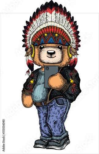 Teddy bear. Cute animal doll vector illustration for shirt print