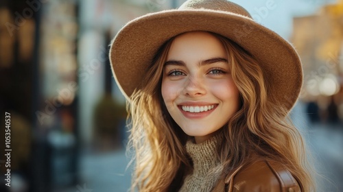 Teenaged French girl with a stylish outfit and a cheerful grin.
