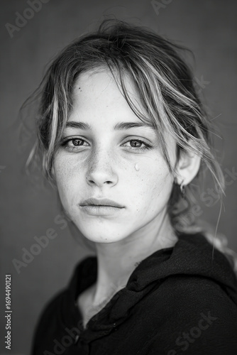 teenager expressing deep emotions with tearstreaked cheeks on clean monochrome background