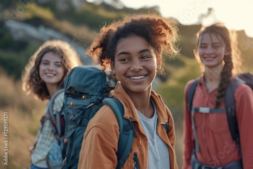 teenagers hiking, enjoying nature, exploring great outdoors, embracing active lifestyle in nature