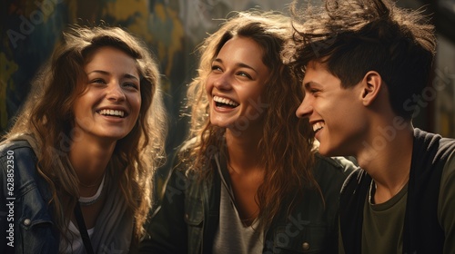teenagers laughing looking at smartphone
