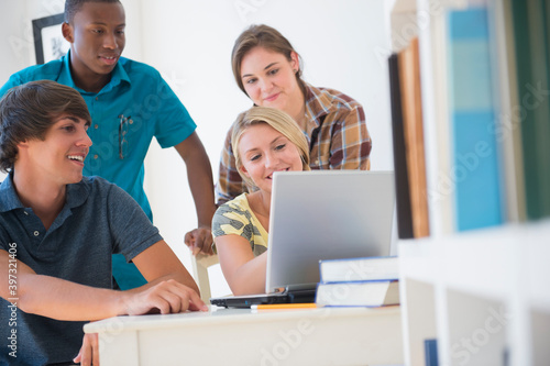 Teenagers using laptop at desk