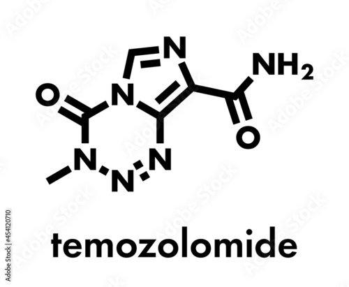 Temozolomide cancer chemotherapy drug molecule. Skeletal formula.