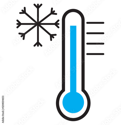 Temperature scale icon symbol. Weather sign. Thermometer with sun and snowflake icon. Hot and cold air temperature symbol in line and flat style for apps and websites, vector illustration