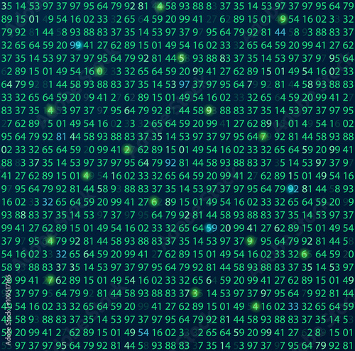 Template coding and programming theme. Green - cyan numbers rows. Vector tiled eps abstract illustration.