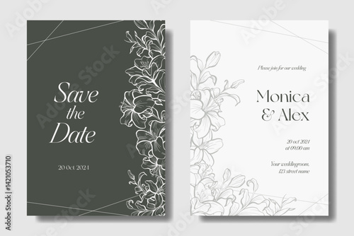 Template Elegant and Minimalist green Lily floral wedding invitation