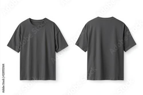 Template for designing with a grey T-shirt mockup, showing both front and back, on a white background