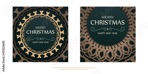 Template Greeting Brochure Merry Christmas dark green with vintage yellow ornament