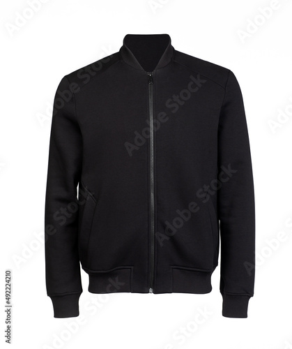 Template of a black sweatshirt on white background. Black pullover. Front view. Sweatshirt layout for the designer