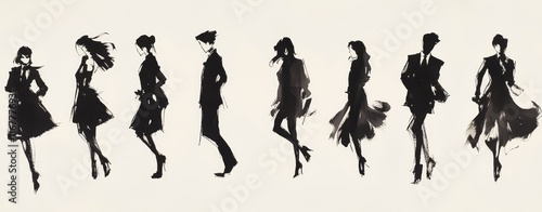 Template of hand-drawn marker sketches featuring pedestrians in diverse poses, ideal for modern illustration in EPS10.
