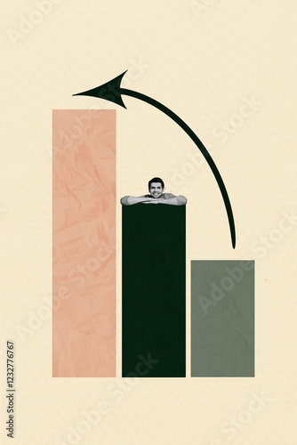 Template poster trend artwork 3D photo collage of young man smile arrow point up human resources hiring business workspace job business