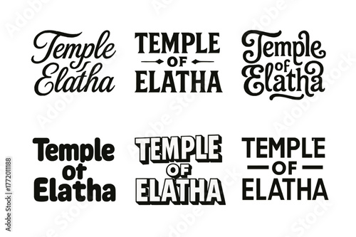 Temple Lettering Designs. Hidden trail. Set Logo of Hidden trail: leaf-marked footprint. harmonious logo variations of the same emblematic concept, each with