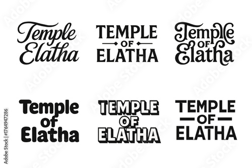 Temple Lettering Variations. Temple of Elatha. Set lettering. harmonious lettering variations of the same emblematic concept, each with different artistic