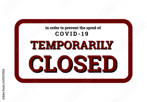 Temporarily closed sign. Prevent the coronavirus spread signboard, office store lockdown graphic design concept isolated on white background. Vector illustration
