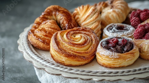 Tempting Arrangement of Delicious Danish Pastries on a Serving Platter