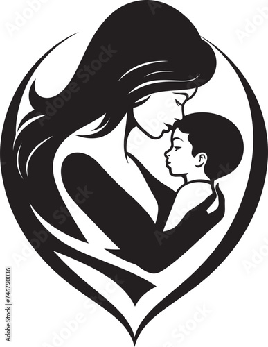 Tender Embrace Iconic Black Graphic of Mother and Child Infinite Care Vector Black Emblem of Maternal Love