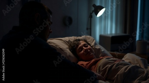 Tender Nighttime Scene Man Watching Over Sleeping Woman