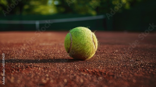 Tennis ball on tennis clay court with copy space for text, Sport and healthy lifestyle wallpaper or background