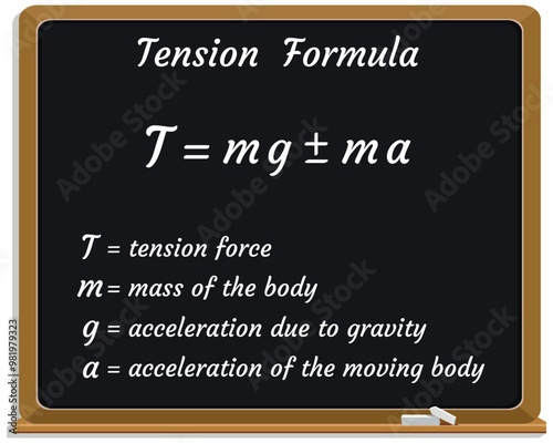 Tension Formula on a black chalkboard. Education. Science. Formula. Vector illustration.