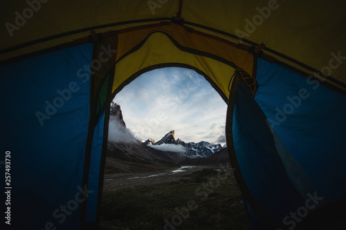Tent view of Mount Thor on Baffin Island